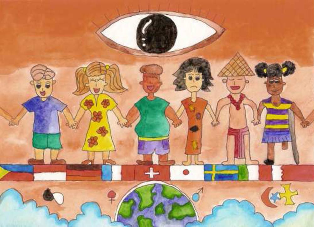 El dibujo ganador ilustra el hecho de que los derechos humanos unen a las personas de todas las culturas.