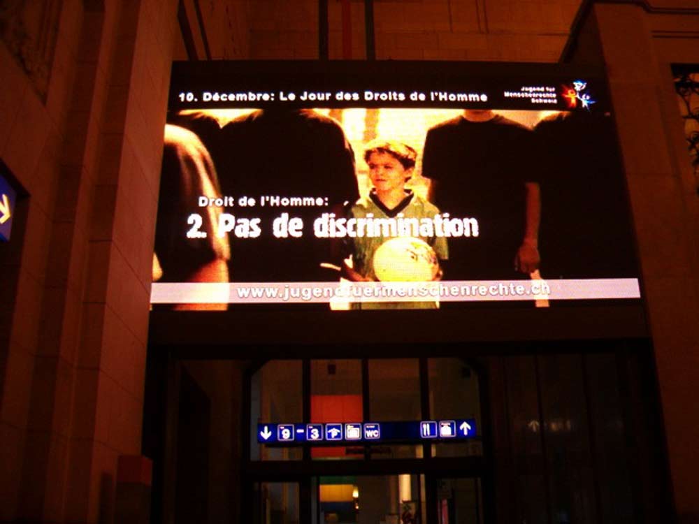 CNN播放2則YHRI的公益短片,短片生動地表達出《世界人權宣言》(UDHR)中的《天生自由平等》與《思想的自由》2項權利。在國際CNN頻道上看到其中一則公益短片的觀眾,就會被引導到www.youthforhumanrights.org網站,不論他們身處何處,都能下載30則公益短片,並獲得有效的教材以教導人權。
